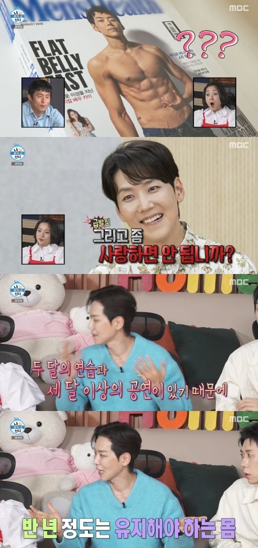 특히 카이는 “2018년 ‘벤허’라는 작품을 할 때 처음으로 운동하기 시작했다. 다른 영화나 드라마 하시는 분들은 그 씬이 끝나면 끝인데 뮤지컬 배우들은 두 달의 연습과 세 달 이상의 공연이 있기 때문에 적어도 반년 정도는 탄수화물 섭취가 어렵다. 그걸 유지하는 게 힘들다”라고 전해 감탄을 자아냈다.
