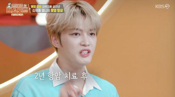 이어 김재중이 과거 폐암 판정을 받은 부친의 소식을 전해 모두를 놀라게 했다. 그러면서 모친이 항암 밥상 식단을 공개하기로 한 것. 앞서 김재중 부친은 부도로 억단위 부채가 있던 사실을 언급, 죽을 고비 많이 넘겼다고 했다. 신내림도 와서 정신적 고통이 컸다는 것. 부친은 "미친 사람취급당했다"고 말하기도 했다.