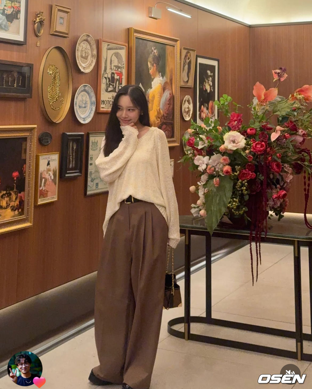 이날 이솔이는 축 늘어지는 소재의 흰 니트에 톤 다운된 브라운 핀턱 와이드 팬츠를 입어 가녀리면서도 가을 느낌이 물씬 풍기게 했다. 그는 씁쓸한 분위기의 이모티콘을 달았지만 사진 속에서 그는 기분 좋게 웃고 있었다.