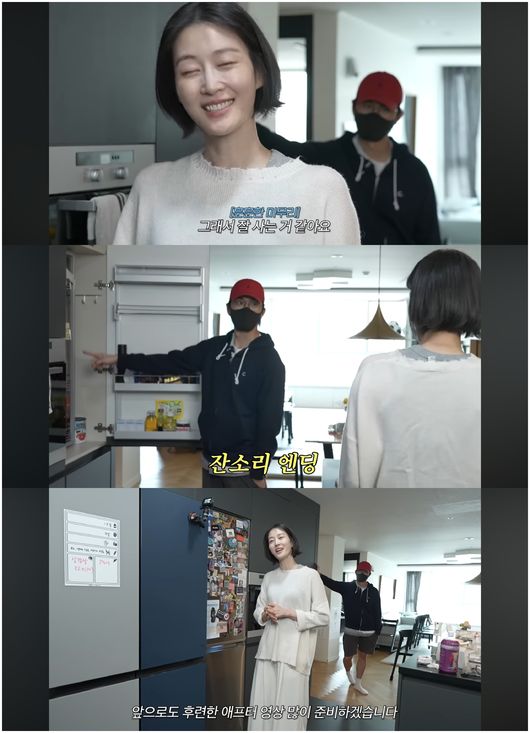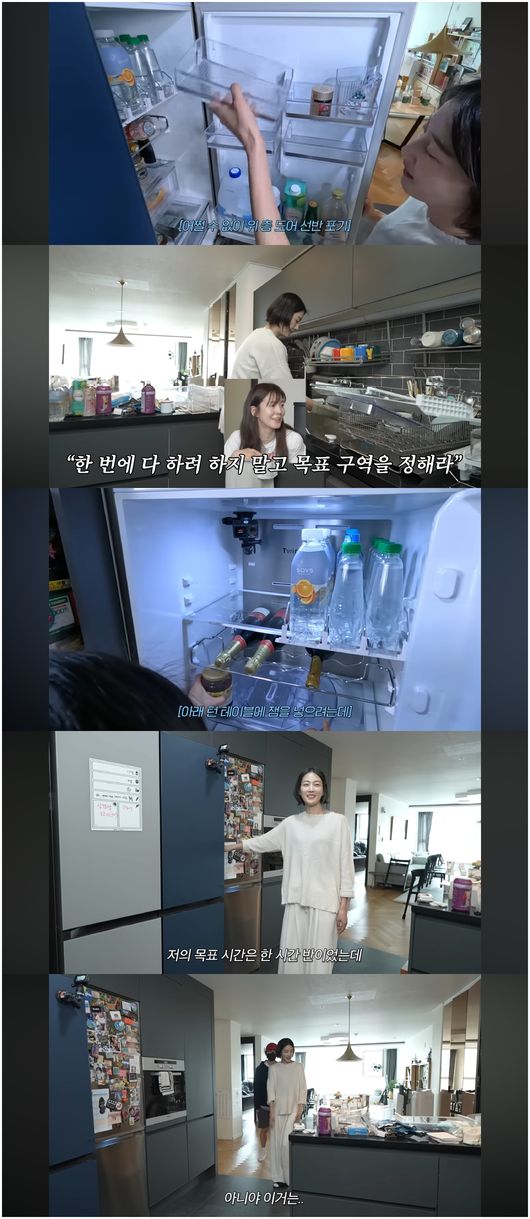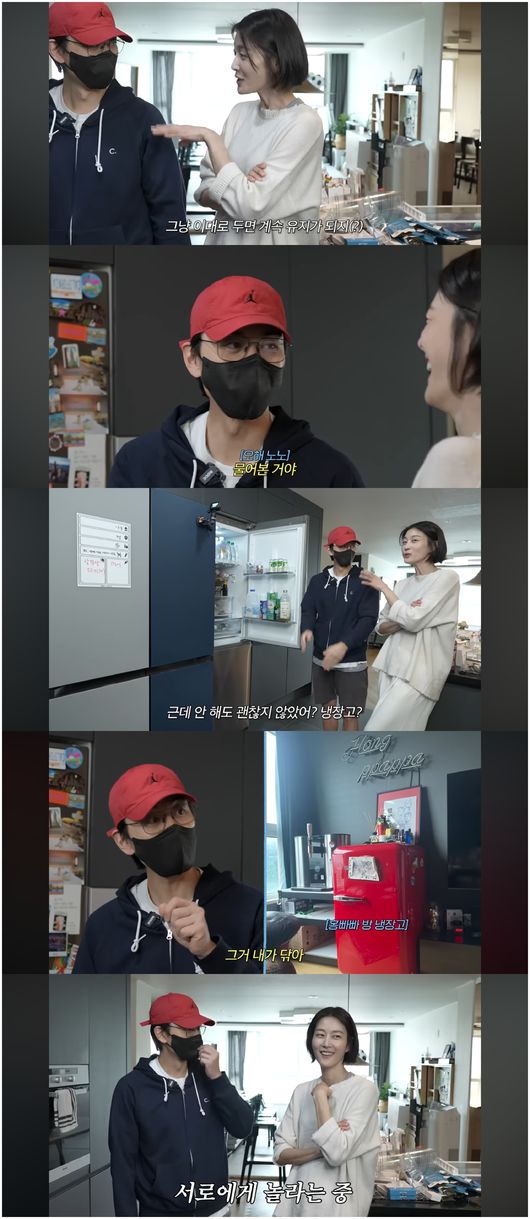 '워킹맘이현이' 모델 이현이가 냉장고 청소에 나서자 남편 홍성기가 거들었다.