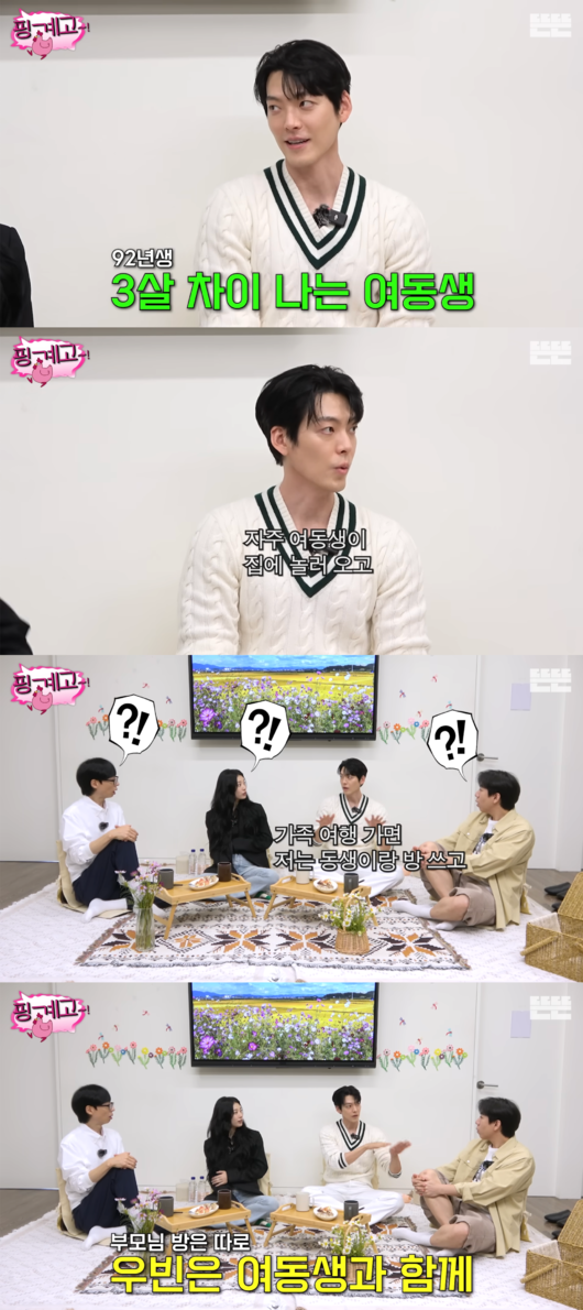 이날 김우빈은 여동생과 사이가 좋을 것 같다는 말에 “그렇다. 여동생이 집에 자주 놀러오고, 연락도 자주 한다. 가족여행 가면 저는 동생이랑 같이 방을 쓴다”고 말해 주위를 깜짝 놀라게 했다.