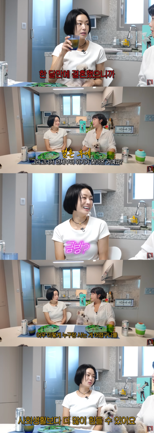이어 “결혼은 끝없는 배려의 싸움”이라며 “남편이 말을 하면 하기 싫을 때도 많다. 그래도 온화한 마음으로 해야 한다. 보통 4~5년차가 고비라고 하는데, 그걸 넘기면 10년 간대요. 그러면 20년, 30년까지 가는 아름다운 사람도 있다”고 결혼과 이혼 후 느낀 점을 밝혔다.