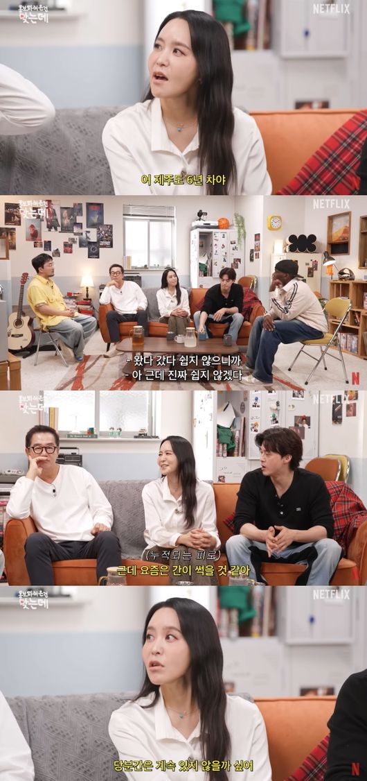 그러자 박지윤은 “근데 처음에 재밌었다. 놀러가는 기분도 들고. 근데 요즘은 간이 썩을 것 같다. 너무 힘들다. 피로도가 장난 아니다”라고 토로했다. 김지훈은 “서울에서 일을 많이 해서 너무 왔다 갔다 하는구나”라고 반응했다.