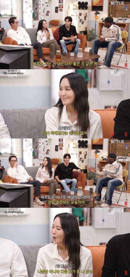 무엇보다 그는 “그래서 좀 화가 많은 사람이 있다면 난 제주도를 추천해. 화날 때 좀 눌러줄 수 있다”라며 “그래서 가기 전보다 많이 착해졌다는 평가를 들어”라고 웃었다.