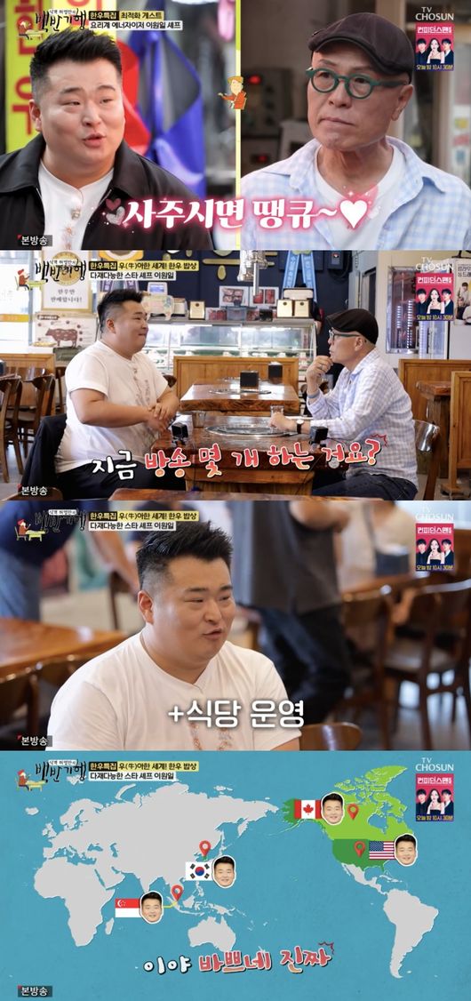 식사를 앞두고, 허영만은 “지금 방송 몇 개 하냐”라고 물었다. 이원일은 “실질적으로 방송이 많은 것도 사실이지만 제가 관여하고 있는 유튜브 채널이 3개가 된다”라고 밝혔다.