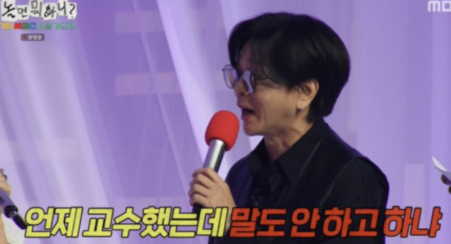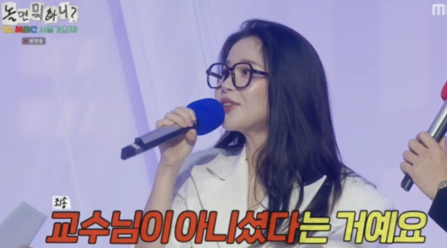 솔라는 "아까도 대기실에서 그 얘기를 한참 나눴는데 교수님이 아니셨다는 거다"라며 스스로도 놀랐던 당시를 떠올리며 반응했다. 그러면서 솔라는 "한양여대의 (교수님 아니셨냐)"라 재차 물었다. 윤도현은 "어떻게 된 거지?라며 의아해해 웃음짓게 했다.