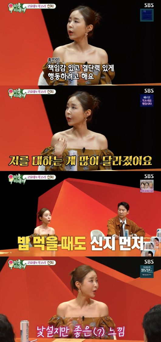 ‘미운 우리 새끼’ 코요태 신지가 결혼 후 달라진 김종민의 근황을 전했다.