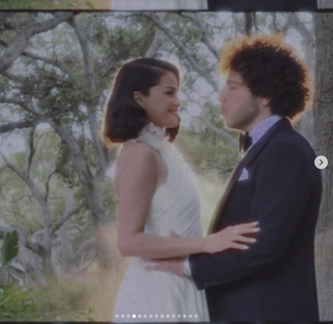 셀레나 고메즈는 이날 자신의 SNS에 결혼식 사진과 영상을 공개하며 팬들에게 결혼식 소식을 직접 알렸다. 홀터넥 스타일의 새하얀 새틴 드레스를 입고, 베니 블랑코의 손을 잡은 채 행복한 순간을 만끽한 모습이었다.