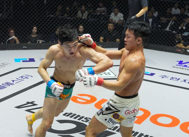 엘보우 공격이 수차례 성공했음에도 상대인 이정현은 다운되지 않았다. 편예준 입장에서는 당황스러웠을 터.