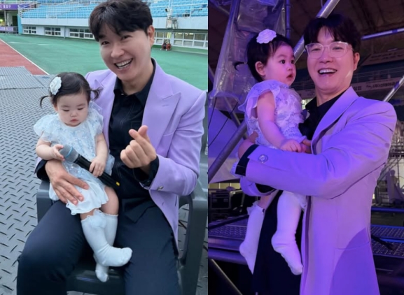 공개된 사진 속 박수홍은 딸과 함께 ‘2025 안산페스타 슈퍼콘서트’를 찾은 모습이다. 보라색 재킷으로 패션에 포인트를 준 박수홍은 딸을 안고 기쁜 미소를 짓고 있으며, 딸은 새하얀 드레스를 입고 인형 같은 비주얼을 뽐내 눈길을 끈다.