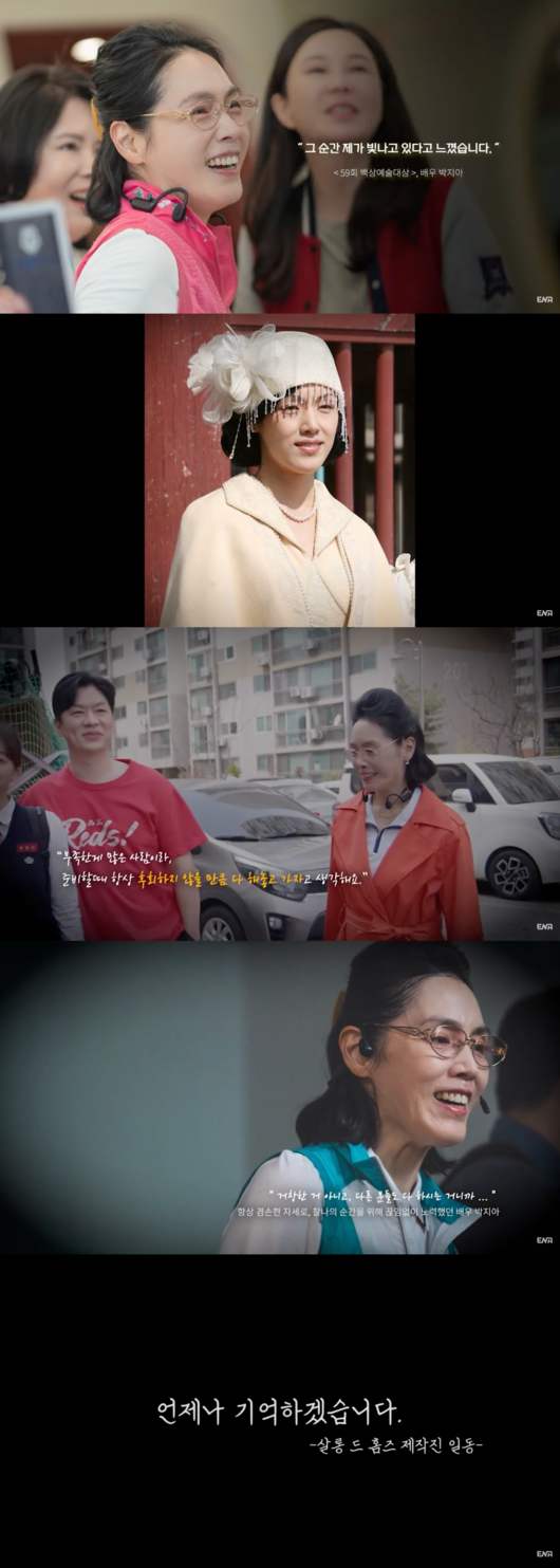 같은 날, ENA 공식 유튜브에는 ‘故박지아 배우님께 살롱 드 홈즈가 보내는 마지막 편지’라는 제목의 영상이 게재됐다. 영상 속에는 생전 박지아가 백상예술대상 시상자로 나섰을 당시 “저는 아무것도 아닌 사람인데 되게 중요한 사람처럼 박수를 쳐주시더라. 그 순간 제가 빛나고 있다고 느꼈다”는 말이 담겨, 보는 이들에게 묵직한 울림을 남겼다.