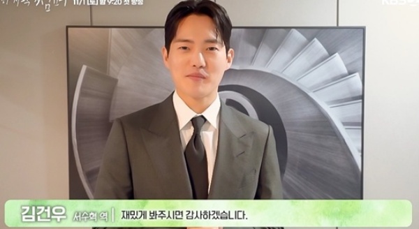 승소율 99%의 항소심 전문 변호사 서수혁 역으로 변신한 김건우는 이전에 보여줬던 이미지와는 달리 깔끔한 슈트 차림으로 등장해 강렬한 인상을 남겼다. 부드러운 미소와 카리스마를 장착한 그는 서류를 넘기는 등 다양한 제스처를 더하면서 직업 특유의 전문성을 그대로 표현했다. 앞서 '더 글로리'에서 손명오로 강렬한 인상을 남긴 후 매번 새로운 모습을 보여준 김건우가 이번 작품에서 또 어떤 변신을 꾀할지 호기심을 자아낸다.