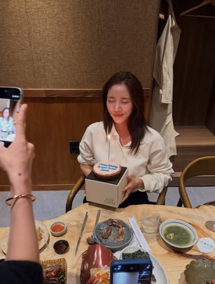 공개된 사진 속 손담비는 아이 없이 지인들과 생일 기념 파티를 즐기는 모습이다. 케이크를 들고 환한 미소를 짓는 모습이 인상적이다.
