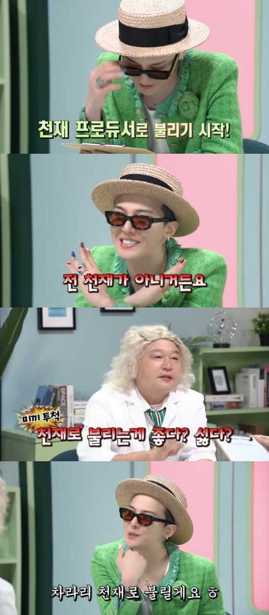지드래곤은 자신의 프로필을 소개했고 “스무 살에 만든 자작곡 ‘거짓말’을 시작으로 내는 곡마다 메가 히트. 이때부터 GD라는 이름 앞에 천재 프로듀서라는 수식어가 붙기 시작했다”라는 글을 읽으며 민망해했다.