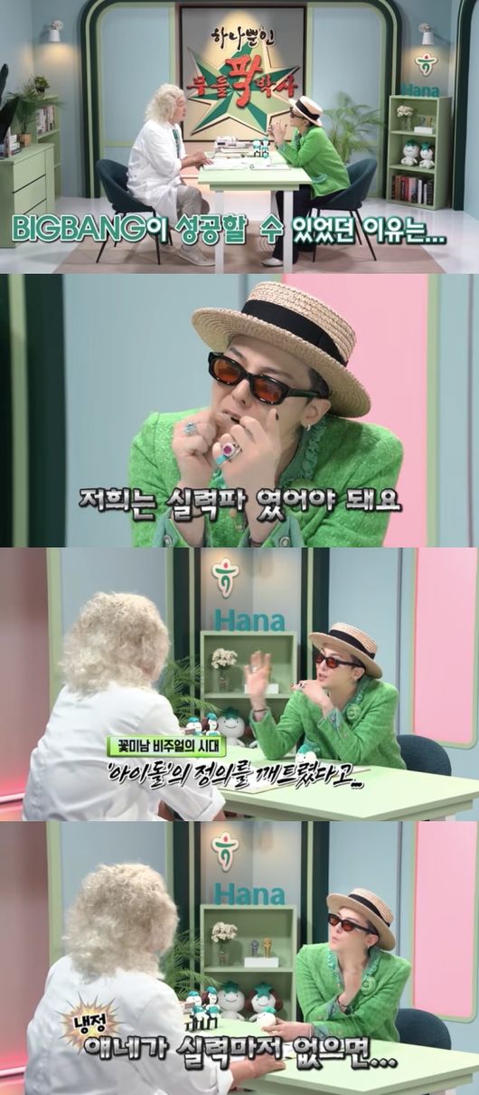 지드래곤은 “저희가 정말 혼이 많이 났다. 대성이 보시면 저희는 실력파였어야 했다. 처음 나왔을 땐 욕을 많이 먹었다. ‘아이돌’의 정의를 깨트렸다고. ‘얘네가 실력마저 없으면’ (안 됐었다)”라고 덧붙였다.