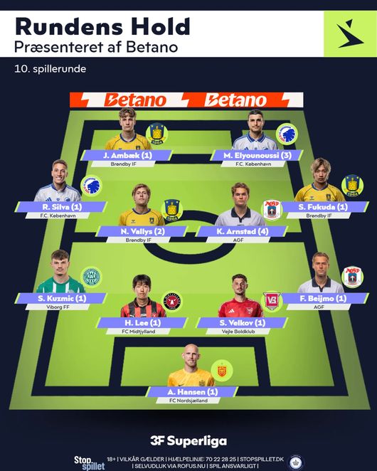 수페르리가는 30일(한국시간) 공식 홈페이지를 통해 2025-2026시즌 수페르리가 10라운드 베스트 11을 공개했다. 4-4-2 포메이션으로 AGF 오르후스와 미트윌란, 코펜하겐, 브뢴비 등 승리를 거둔 상위 4개 구단에서 총 8명이 선정됐다.
