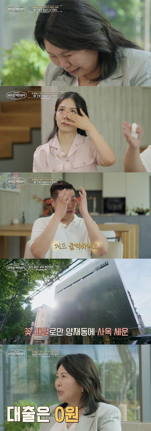 이들의 성공 신화는 아내 윤공순의 가혹한 현실이 시작이었다. 아버지를 일찍 여의고 13살 어린 나이에 거리로 내몰린 윤공순은 식당 물동이 생활, 떡 장사, 리어카 장사까지 끝없는 생계 전쟁 속에서 하루하루를 버텨냈다. 그러나 운명처럼 찾아온 '인생의 은인' 덕분에 길거리를 전전하던 리어카는 1평짜리 꽃집으로, 다시 80평 대형 화원으로 성장했다. 이후 그녀는 결국 양재동 한복판에 지하 1층, 지상 5층 규모의 사옥을 올리며 '꽃배달 신화'를 완성했다.