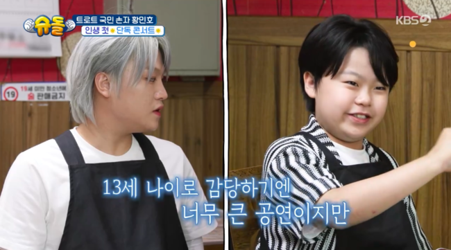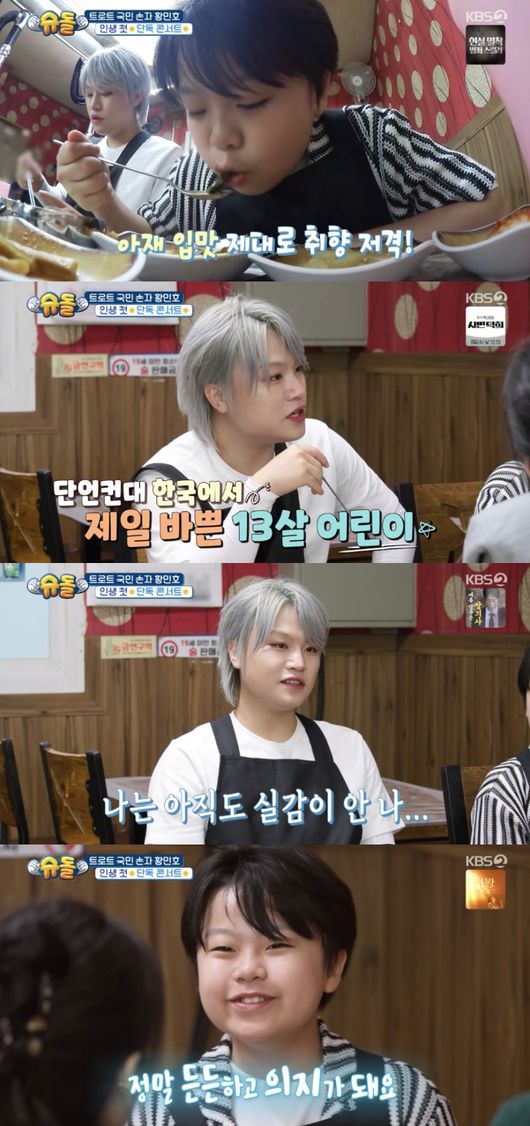 이때 황민우는 동생 황민호를 향해 “내가 봤을 때 대한민국에서 13살 어린이 중에 제일 바쁜 어린이일 거다”라고 말했다.
