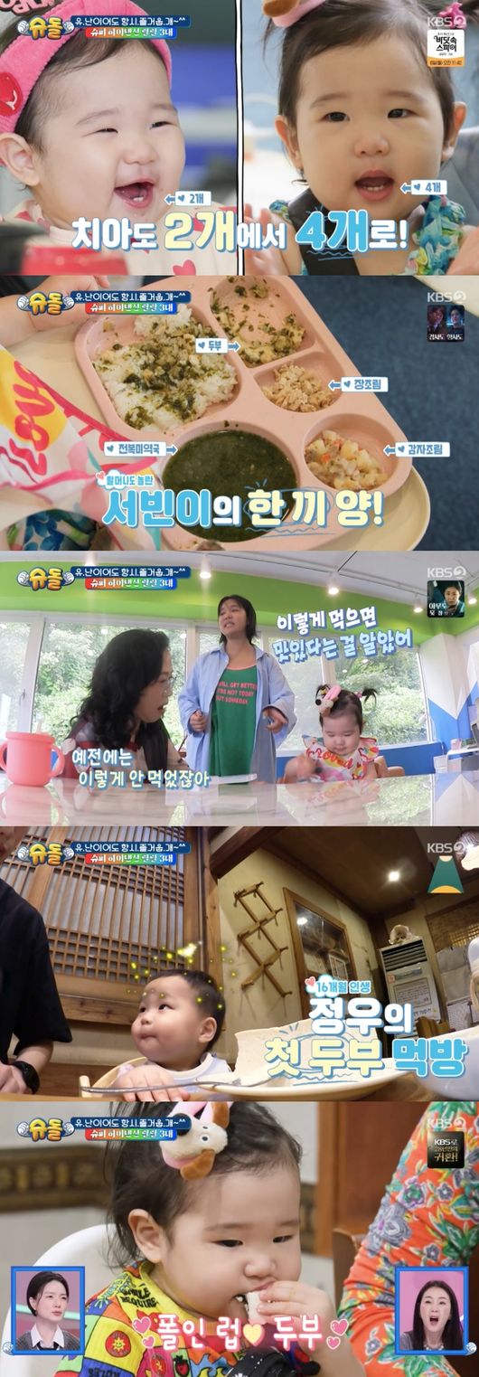 그렇게 입을 크게 벌리며 밥을 먹은 서빈이는 이후 김준호의 둘째 아들 정우 못지 않는 두부 먹방까지 선보여 눈길을 사로잡았다.