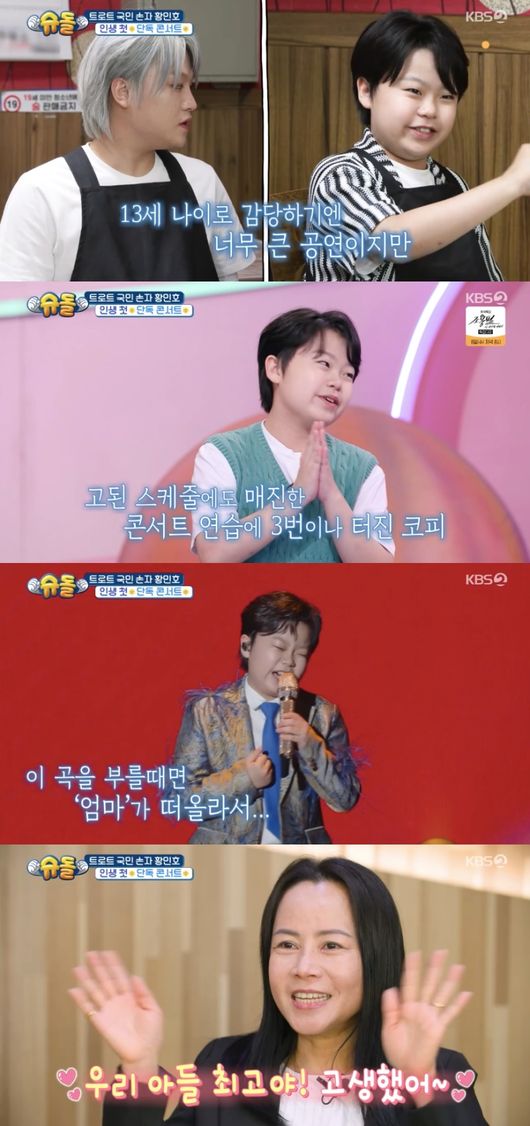 목놓아 부르는 ‘어매’에 박수홍은 “어떻게 13살 감성에서 나오는 거냐. 어매 진짜 어매어매하다”라고 감탄했다. 반면 어머니는 공연을 마친 뒤 참았던 눈물을 흘렸다.