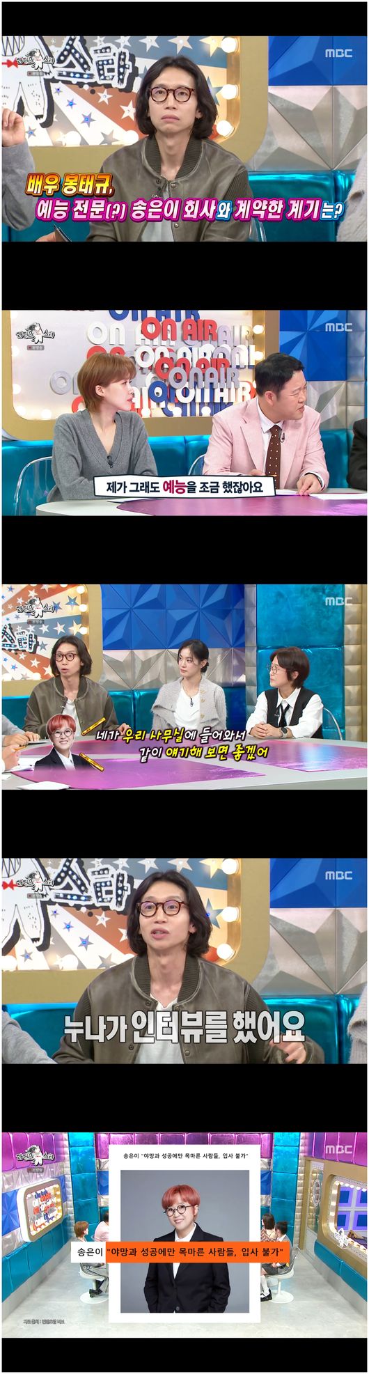 ‘라디오스타’ 배우 봉태규가 송은이 소속사로 이적한 이유를 밝혔다.