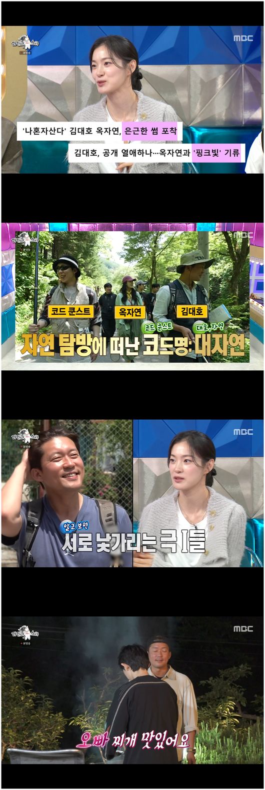 특히 옥자연은 아나운서 출신 김대호와의 핑크빛 기류로 화제가 됐다. 옥자연은 “코드 쿤스트랑 김대호랑 자연 탐방을 하는 코너로 나왔다. 그런데 김대호랑 핑크빛 기류가 있다, 기사가 떴다”라고 말했다. 이에 봉태규는 “둘이 진짜 뭐가 있어 보이던데”라며 놀렸고, 옥자연은 “예능이니까, 적극적으로 김대호한테 오빠라고 하고 그랬다”라면서 “그런데 김대호나 나나 둘다 내향적인 성격이다”라며 해명했다.