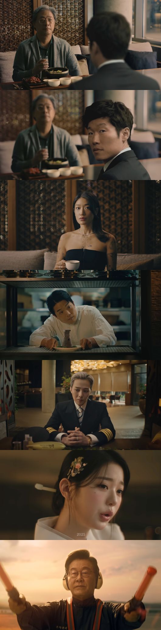 이재명 대통령은 APEC 참가국 항공기들을 인도하는 ‘주차관리원’ 역할로 깜짝 등장해 시선을 사로잡기도. 신 감독은 “개최국을 대표하는 인물로 이재명 대통령이 꼭 참여해주셔야 한다고 생각했다”며 “다만 권위적으로 그리고 싶지는 않아, 참가국들의 항공기들을 정리하는 주차관리원 역할을 요청드렸는데, 쉽지 않은 선택에도 함께해주셔서 감사했다”라고 전했다.