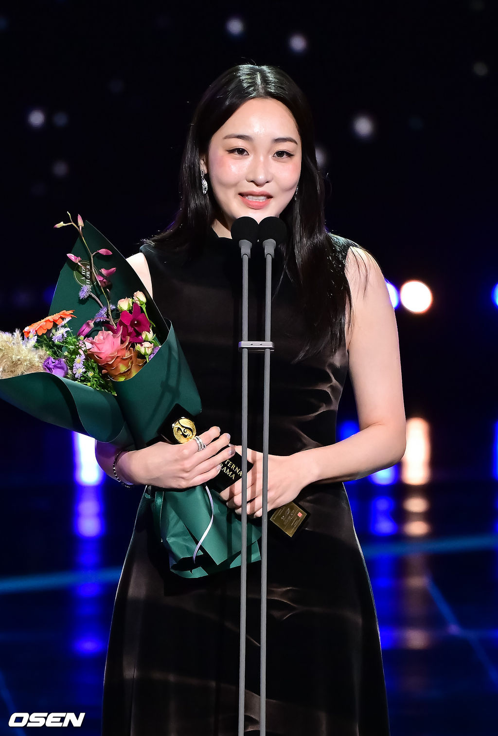 국제경쟁부문 개인상 남녀연기자상을 수상한 파친코 시즌2 김민하가 소감을 말하고 있다. 2025.10.02 / soul1014@osen.co.kr