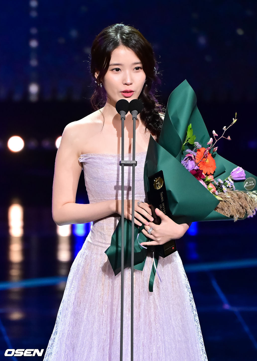 K드라마 부문 남녀연기자상을 수상한 아이유가 소감을 말하고 있다. 2025.10.02 / soul1014@osen.co.kr