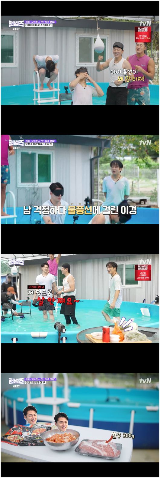 제작진은 라면, 콜라, 소고기를 걸고 각각 게임을 진행했다. 아침부터 채식주의 식단으로 식사를 한 이들은 특히 탄수화물을 먹지 못한 것에 한이 맺혔다. 라면과 콜라와 닭갈비가 걸린 '물풍선을 안대 쓰고 피하기' 게임이 시작되자 이이경부터 실패하며 웃음을 자아냈다.