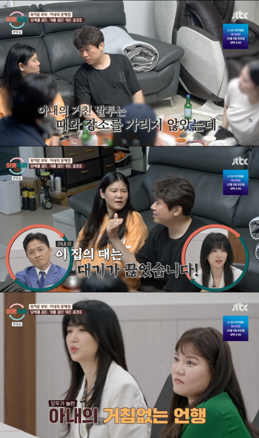 남편은 아내가 상당한 빚이 있음에도 과소비를 멈추지 않는다고 폭로했다. 공개된 영상에서 아내는 갑자기 캐리어를 꺼내 "내일 제주도를 떠날 것"이라고 선포했다. 또한 아내가 명품 가방과 의류를 꽤 많이 보유하고 있어, 경제 관념에 문제가 있다고 주장했다.