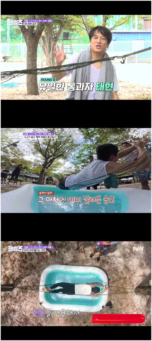 다음 게임으로는 닭갈비가 걸려 있었다. 안대로 눈을 가린 채 물풍선을 피하는 게임이었다. 차태현은 “저거 신승호 다 먹으면 살 다시 찌겠다”라며 놀렸으나 신승호는 “저 정도 먹는 건 살도 안 찐다”라며 자신만만하게 말했다. 차태현은 물풍선으로 안면을 가격 당했으나 물풍선이 터지지 않아 그대로 주저앉았다. 물풍선이 터져야 실패였지만, 어쨌든 실패가 돼 차태현은 아쉬움을 감추지 않았다.