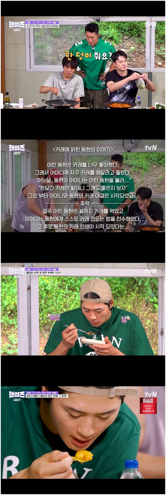 김동현은 새우와 당근이 특색을 자랑하는 카레를 만들어냈다. 모두가 반신반의했으나 그 맛에 감탄했다. 김동현은 “제 카레가 역사가 있다”라면서 어린 시절부터 시작된 카레 사랑으로 직접 카레를 끓일 줄 안다고 전했고, 모두가 만족해하는 것에 그 스스로도 만족해했다.