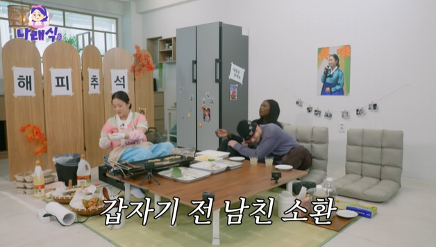 박나래는 전을 부치는 사이 "일단 왔으니까 식혜 알아서 먹어라"라고 말했고, "식혜 아냐"라고 물었다. 카니는 "안다"면서도 "한번도 안 마셔봤다"고 털어놨다.