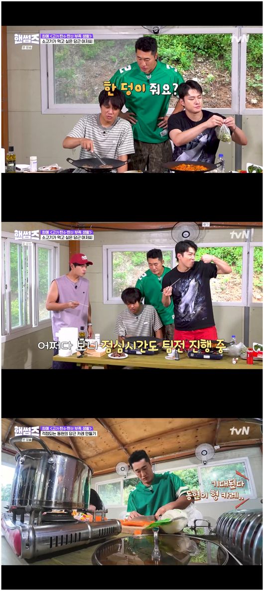 김동현은 요리 실력을 발휘했다. 바로 당근과 새우가 듬뿍 들어간 카레였다. 오상욱은 “카레 이거 맛있겠다. 밥이랑 먹으면”라며 단박에 맛을 알아보았다. 이이경은 “밥이 없어”라고 말해 오상욱을 실망시켰으나 김동현이 오래도록 끓인 카레는 그만한 맛이 있었다.