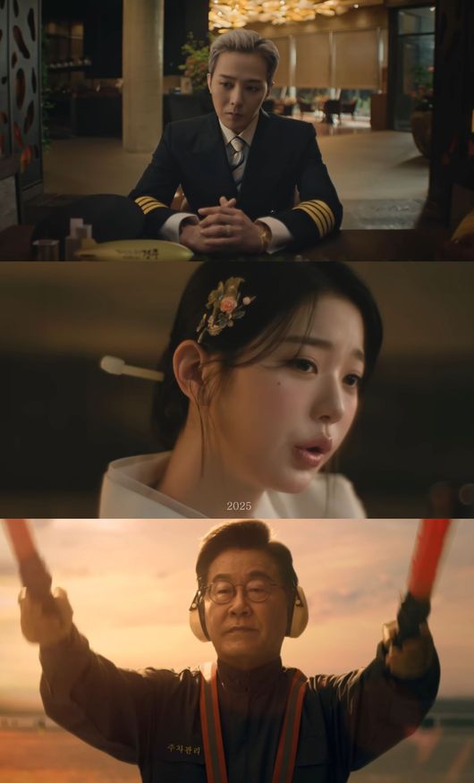 결국 지드래곤은 기체 운전에 나섰고, 이재명 대통령이 항공기 유도원 복장을 하고 경광봉을 흔들며 등장했다. 각국의 항공기들을 정리하는 ‘주차관리원’ 콘셉트로 나타난 대통령의 모습은 예상 밖의 재미를 선사하며 영상의 클라이맥스를 장식했다.