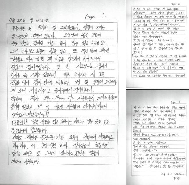 송영길 소나무당 대표는 3일 자신의 SNS에 "추석 연휴 시작입니다. 가수 김호중 씨 소식을 전합니다"라며 김호중의 손편지 3장을 공개했다.