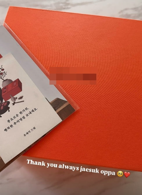 공개된 사진 속에는 유재석이 보낸 추석 선물이 담겨 있었고, 동봉된 카드에는 “풍요로운 한가위, 행복한 추석 명절 보내세요. 유재석 드림”이라는 문구가 적혀 있어 눈길을 끌었다.