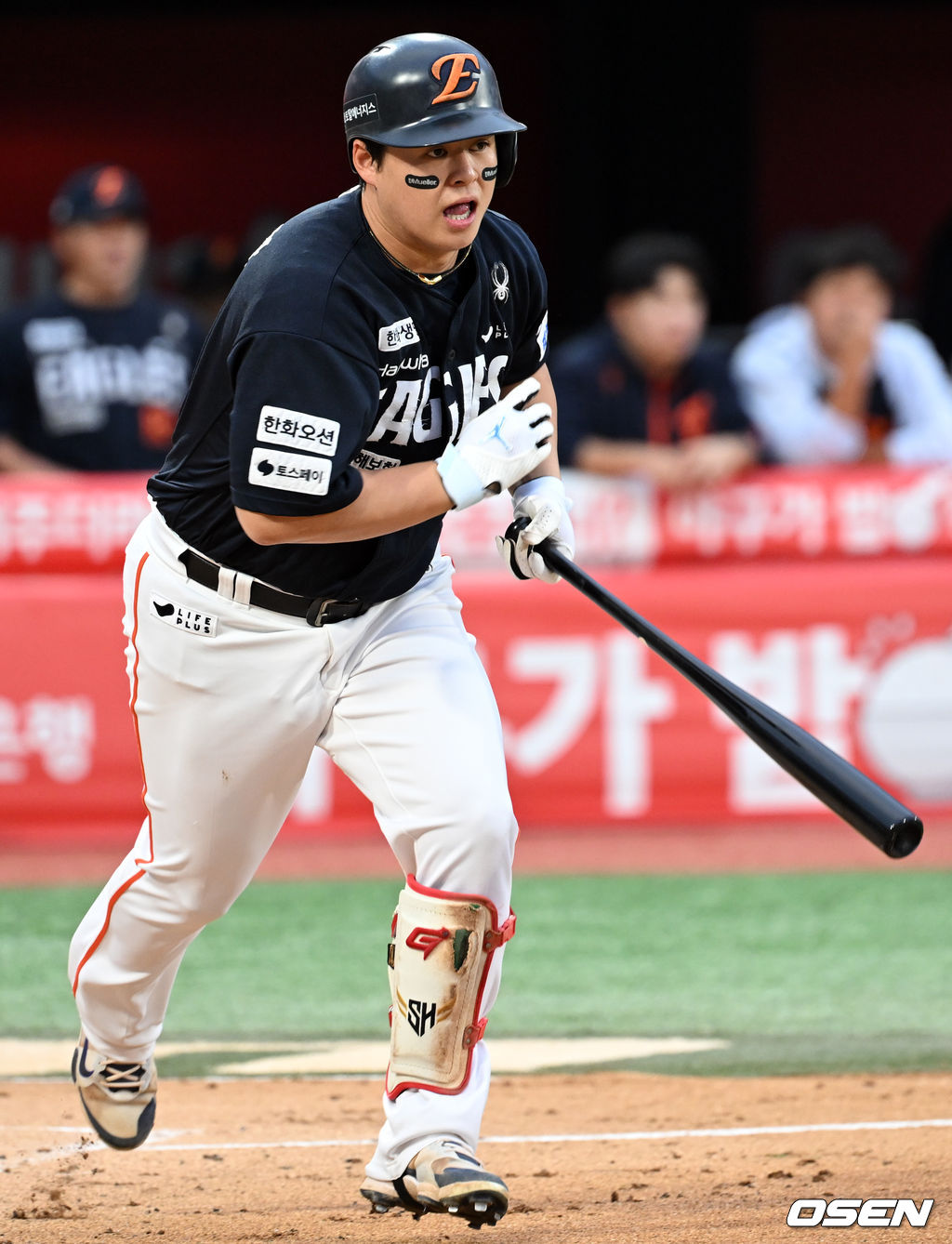 2회초 1사 한화 노시환이 2루타를 날리고 있다. 2025.10.03 /cej@osen.co.kr
