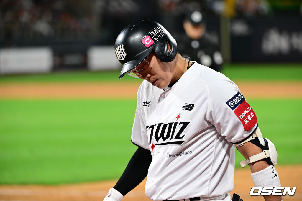 5회말 무사 1,3루 KT 허경민이 희생타를 날린 뒤 아쉬워하고 있다. 2025.10.03 /cej@osen.co.kr