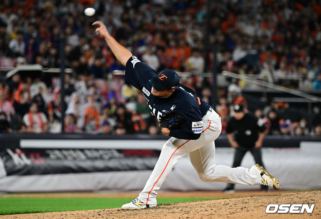 한화 선발 박준영이 5회말 2사 만루에서 KT 장성우를 삼진으로 돌려세우고 있다. 2025.10.03 /cej@osen.co.kr