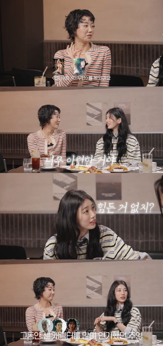 그때부터 내적 친밀감을 느꼈다는 이주영은 “웃는 것도 막 별로 신경 안 쓰고 웃고, 나도 약간 그렇다. 실제로 만나니까 더 가깝고 제가 또 만나기 직전에 ‘안나’랑 ’이두나’를 봤다. 그래서 막 수지를 볼 때마다 너무 아련한거다”라고 털어놨다.