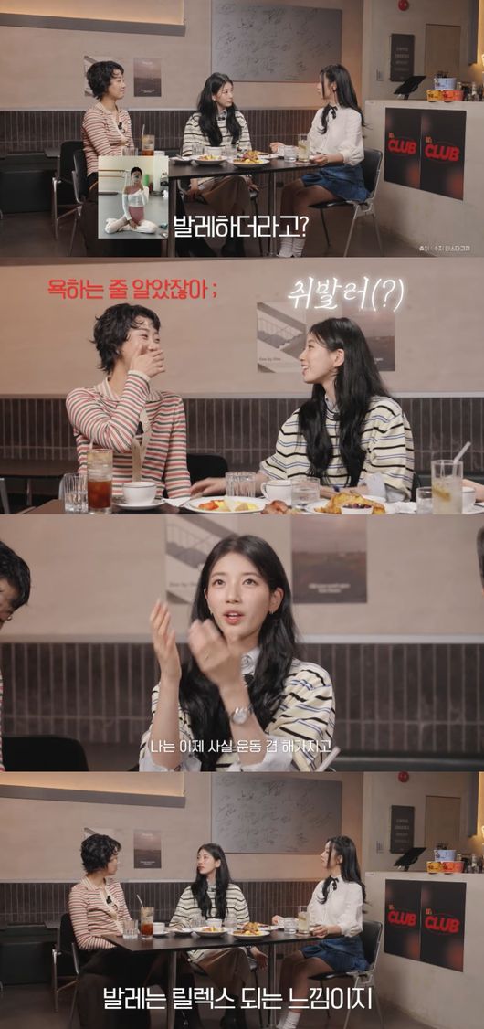 또 수지는 “나는 이제 사실 운동 겸 해가지고 추천을 해서 갔는데 난 너무 재밌었다. 근데 발레복도 너무 예쁘고 발레랑 잘 맞나봐”라며 “PT쌤 죄송한데 PT보다 발레가 훨씬 재밌다. 릴렉스 되는 느낌이 있다”라고 설명했다.