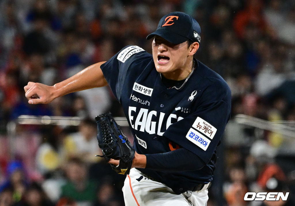 한화 선발 박준영이 5회말 2사 만루에서 KT 장성우를 삼진으로 돌려세우고 있다. 2025.10.03 /cej@osen.co.kr