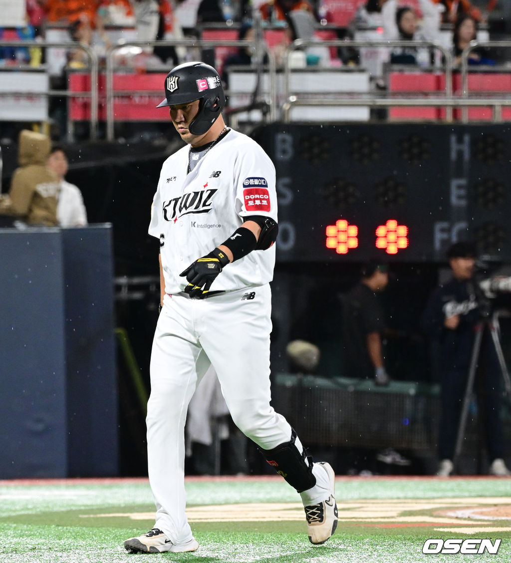 5회말 2사 만루에서 KT 장성우가 삼진으로 물러나고 있다. 2025.10.03 /cej@osen.co.kr