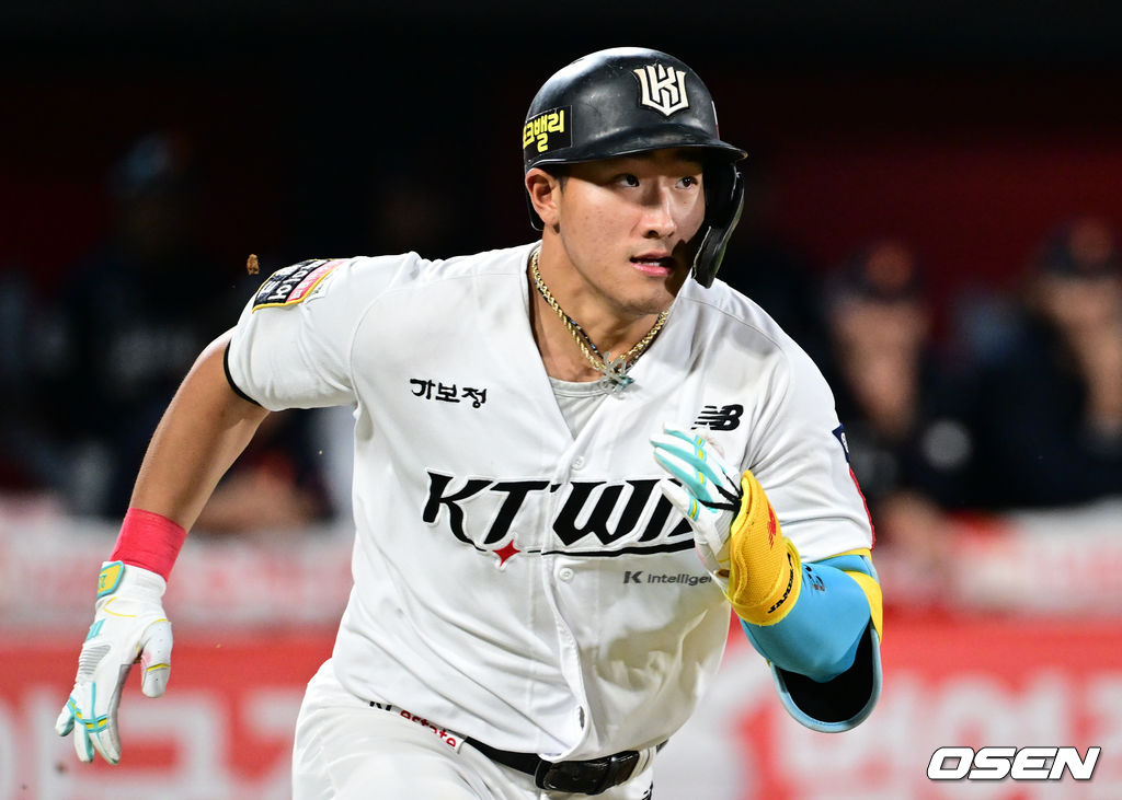 7회말 2사 KT 안현민이 2루타를 날리고 있다. 2025.10.03 /cej@osen.co.kr