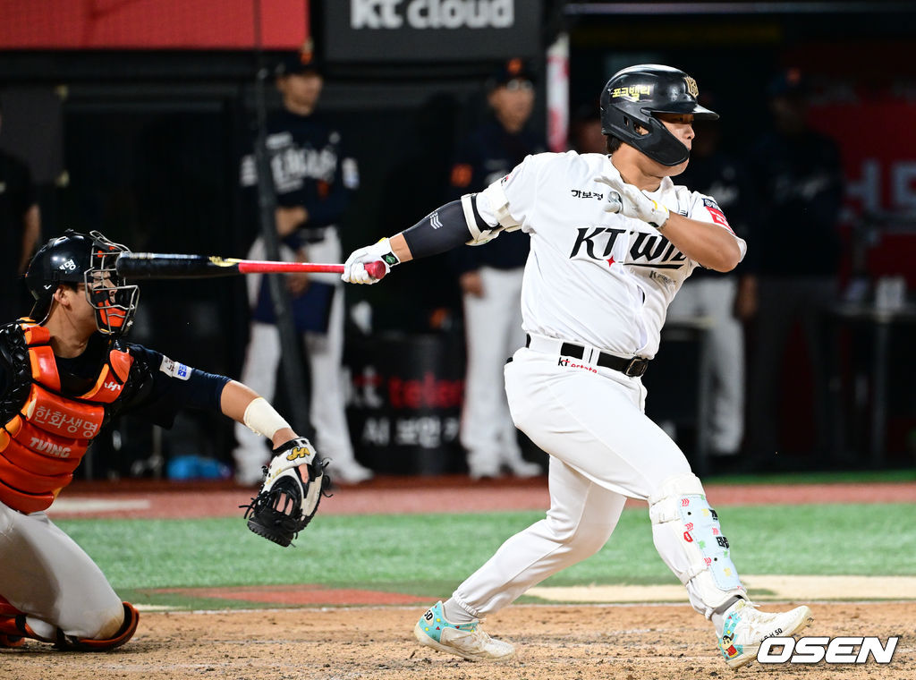 9회말 1사 1,3루에서 KT 강백호가 적시타를 날리고 있다. 2025.10.03 /cej@osen.co.kr
