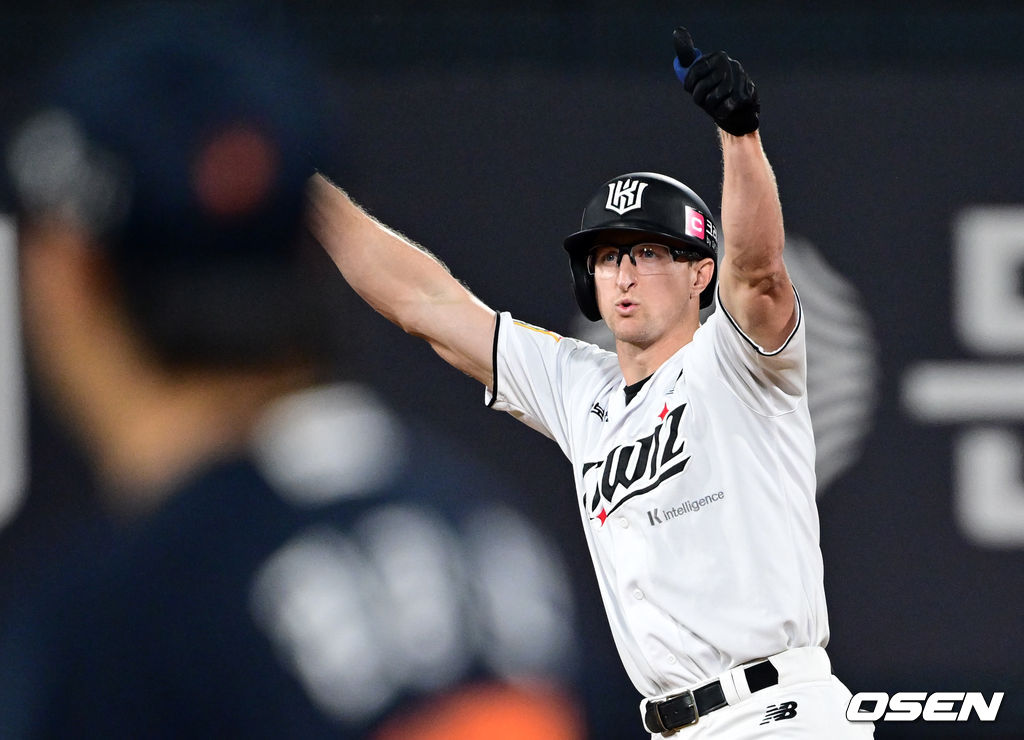 9회말 2사 만루에서 KT 스티븐슨이 동점 2타점 2루타를 날린 뒤 세리머니를 하고 있다. 2025.10.03 /cej@osen.co.kr