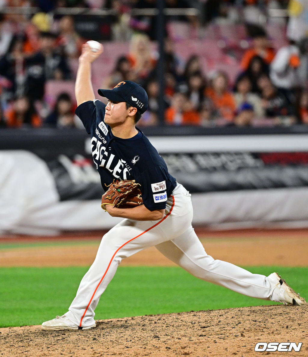 연장 10회말 마운드에 오른 한화 정우주가 역투하고 있다. 2025.10.03 /cej@osen.co.kr