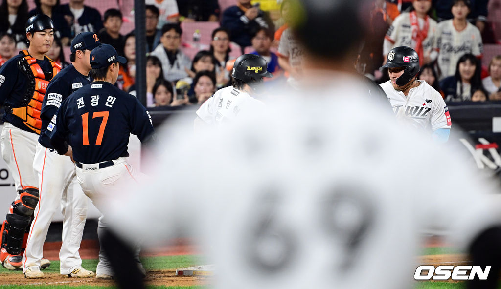 연장 10회말 1사 2,3루에서 KT 유준규 번트 실패 때 런다운에 걸린 김민혁이 아웃되고 있다. 이후 KT 안현민이 한화 김태연에게 2루에서 태그아웃 되며 이닝 종료. 2025.10.03 /cej@osen.co.kr